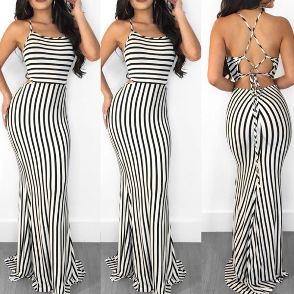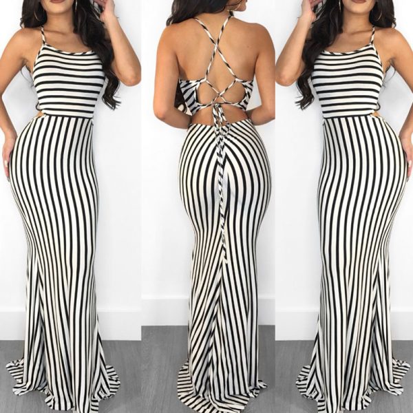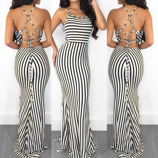 Black and white striped jumpsuit for women. This striped one piece jumpsuit has a lace up back. Super cute jumper with flared bottoms. Never sacrifice style for comfort with this amazing fit.