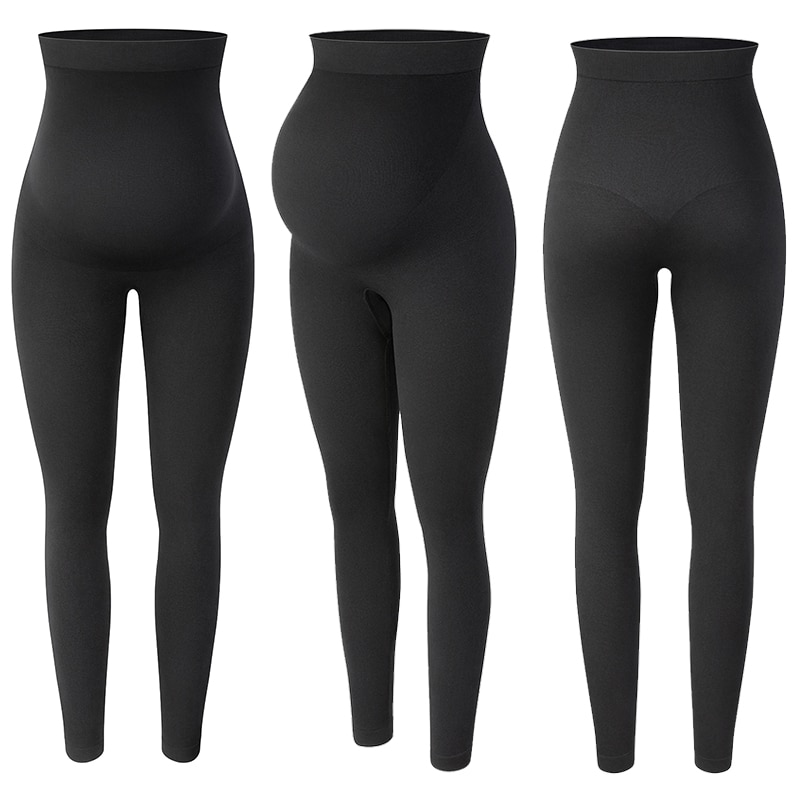 Black maternity leggings. Extra stretchy and durable nylon spandex blend for a comfortable fit. If you’ve been searching for pregnancy leggings that are supportive but not restrictive, you’ve found them.