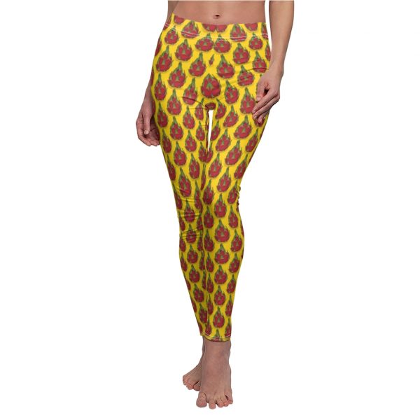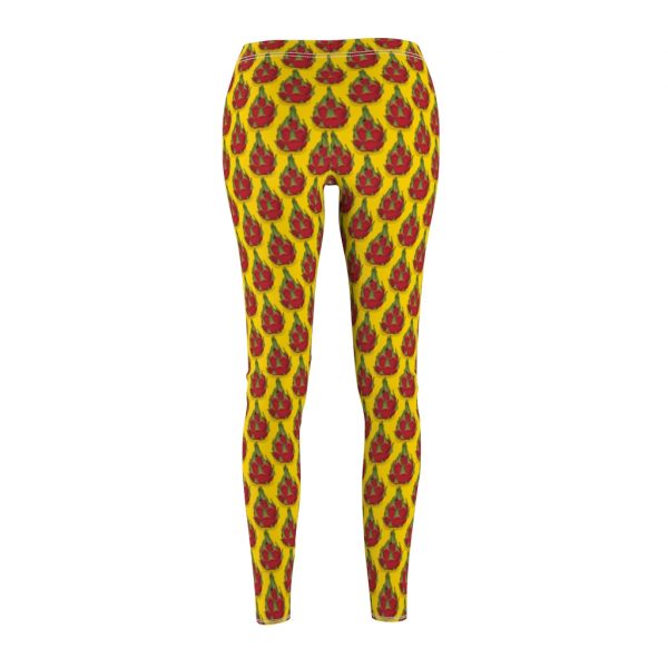 Dragonfruit leggings in yellow. Tropical fruit pattern leggings for casual wear or exercise.