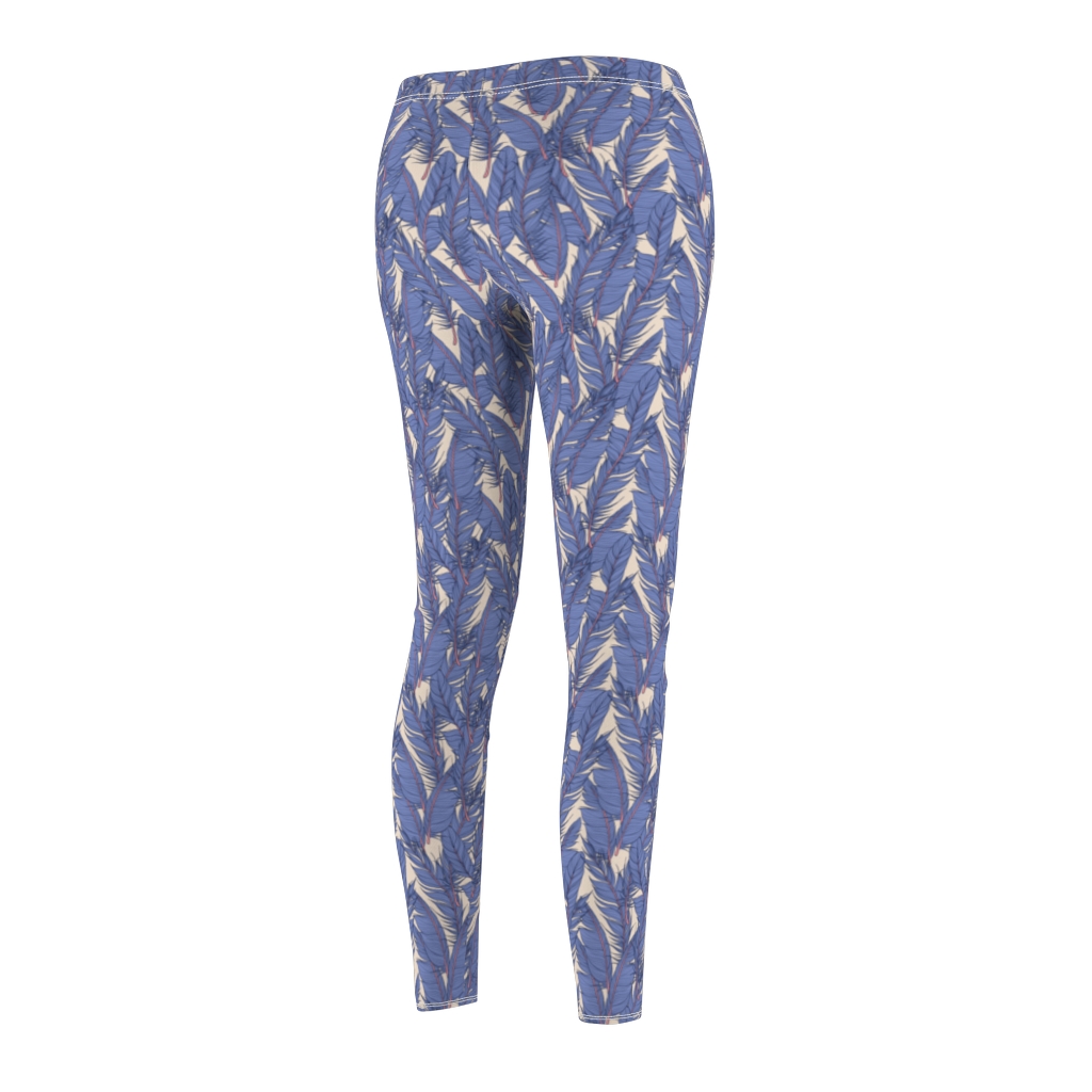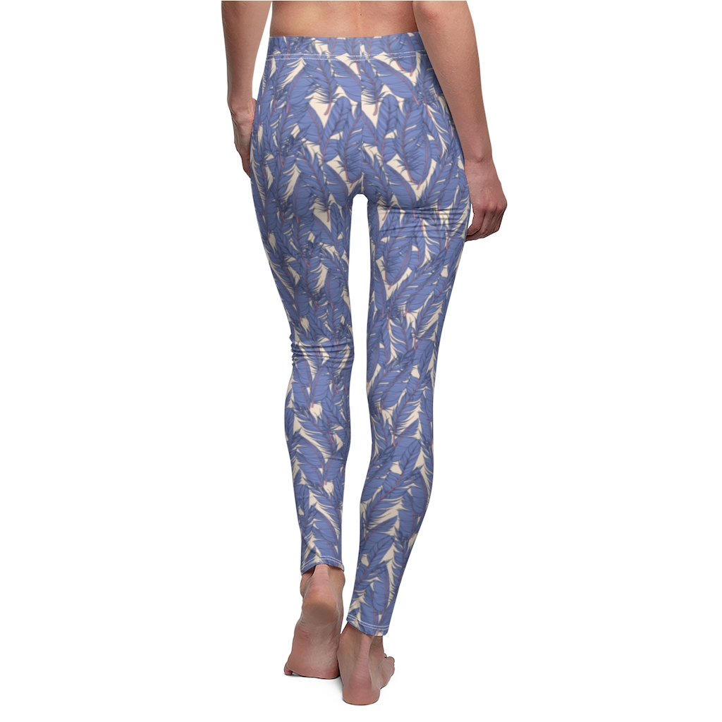 Feather leggings. Blue feather print leggings. Comfortable and form fitting. Perfect for working out or casual every day wear.