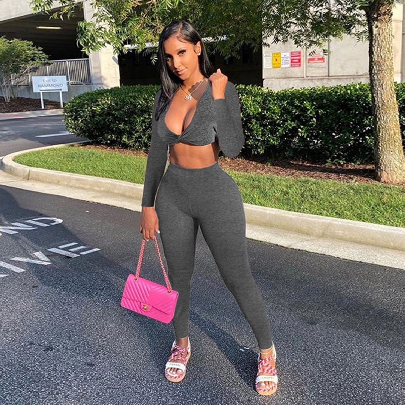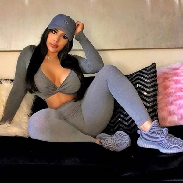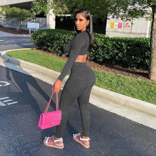 Long sleeve crop top and leggings set. Available in black or grey. Don’t sacrifice style for comfort! Get this two piece dressy leggings set for any occasion.