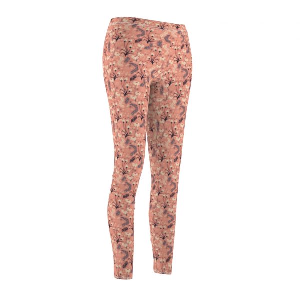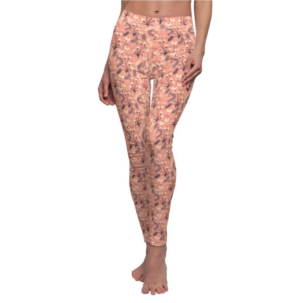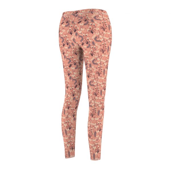 Pink floral leggings. Chamomile print on pale pink leggings.